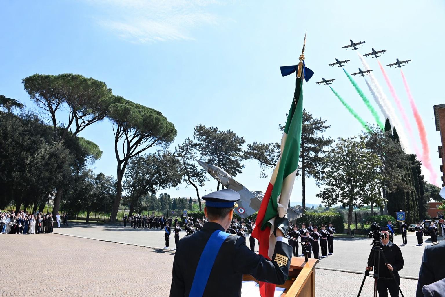 L’atto solenne del Giuramento di fedeltà alla Repubblica, pronunciato dinanzi alla Bandiera di Istituto, è stato reso ancor più emozionante dal sorvolo della Pattuglia Acrobatica Nazionale.